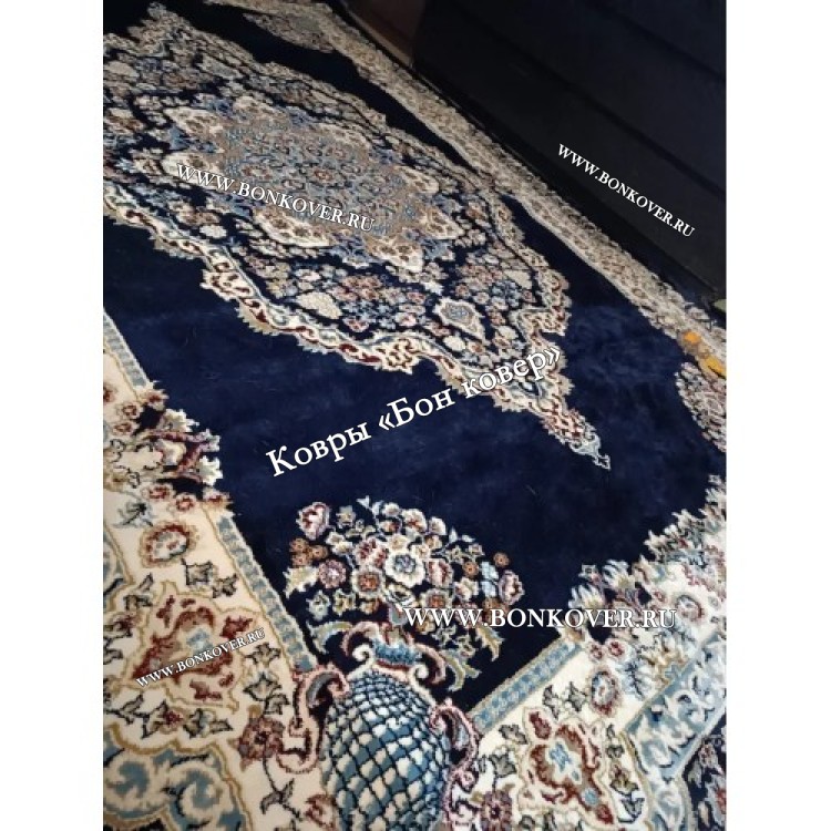 Турецкий Ковер Медальон дизайн 72 Синий станет шикарным преображением жилого помещения, подчеркивая высокий статус семьи владельца.