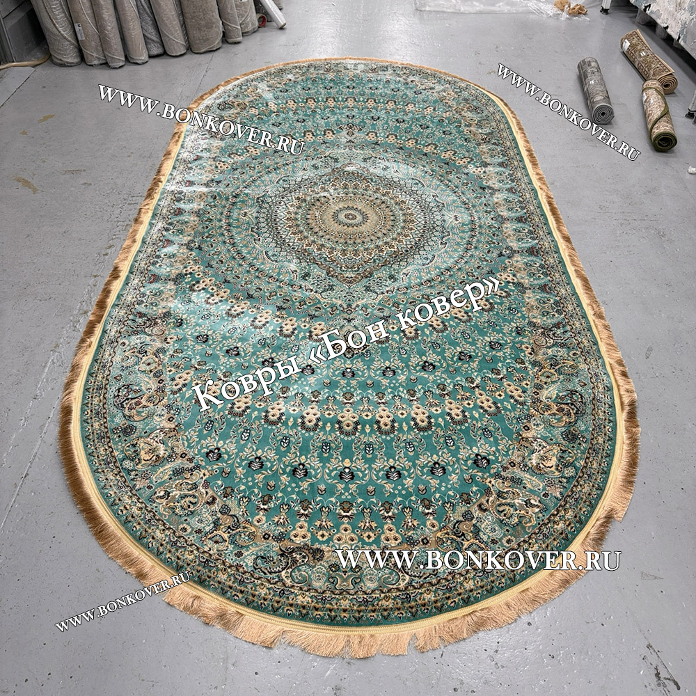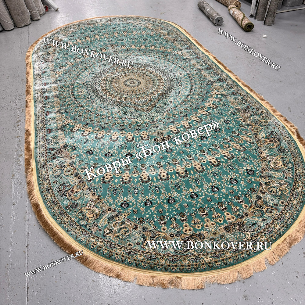 Изящный Овальный Ковер Медальон Арт 30068 Бирюзовый наполняет интерьер квартиры теплом и уютом, гармонично сочетает в себе изящество и стиль. Он выполнен из экологически чистого сырья, комфортный и долговечный.
